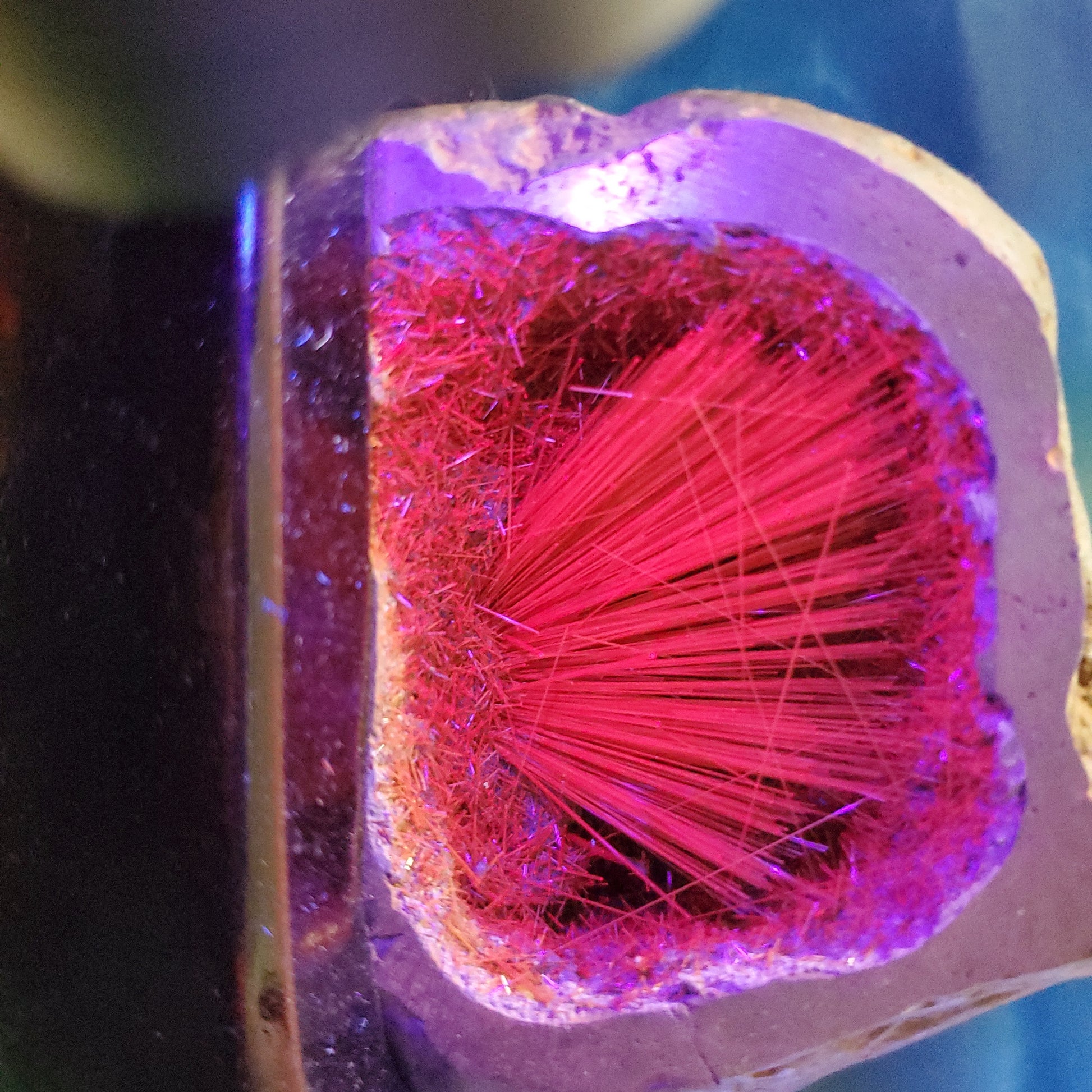 Only one in stock, uv reactive copper rutile geod