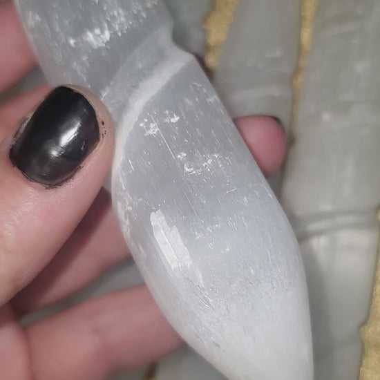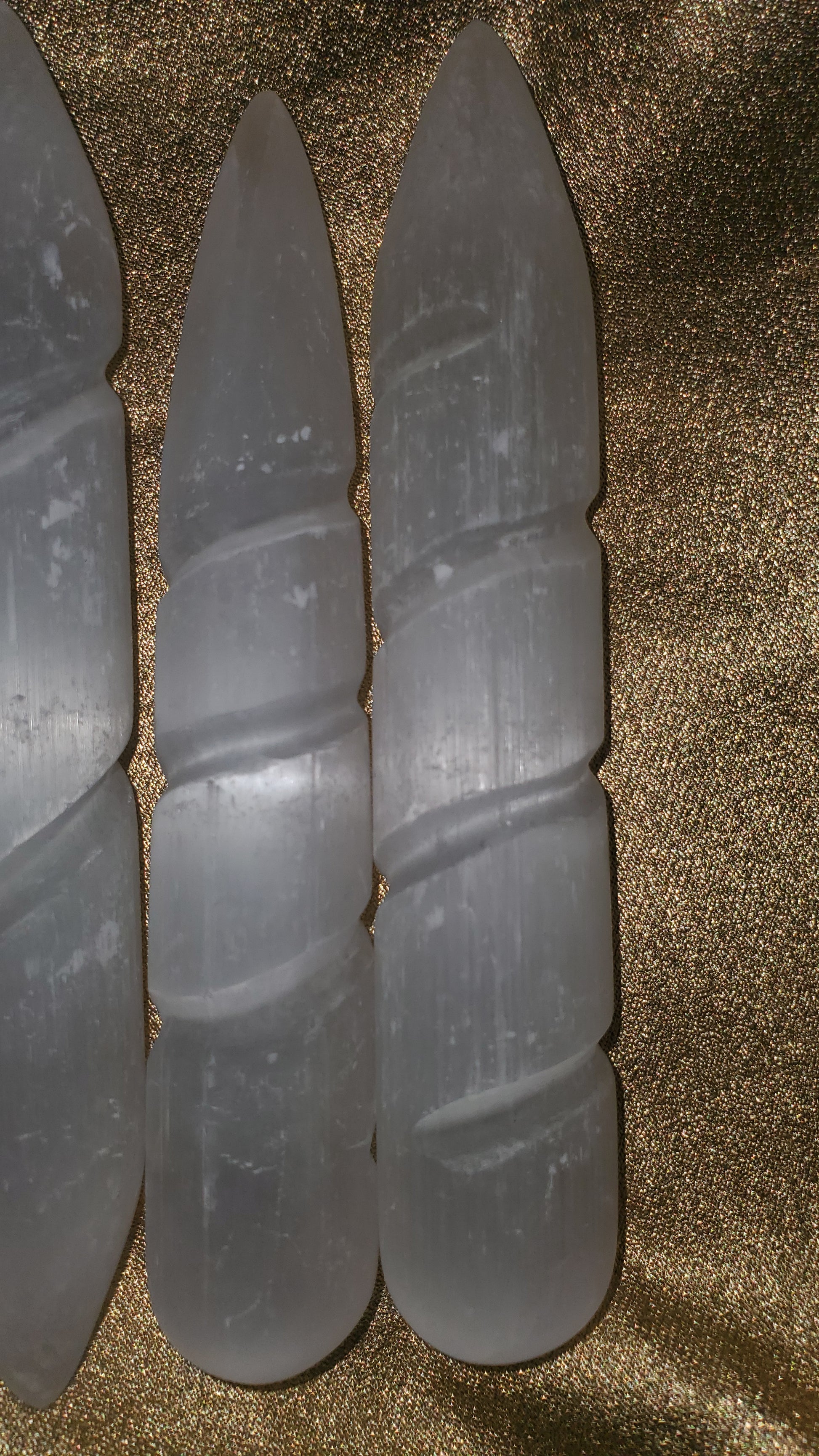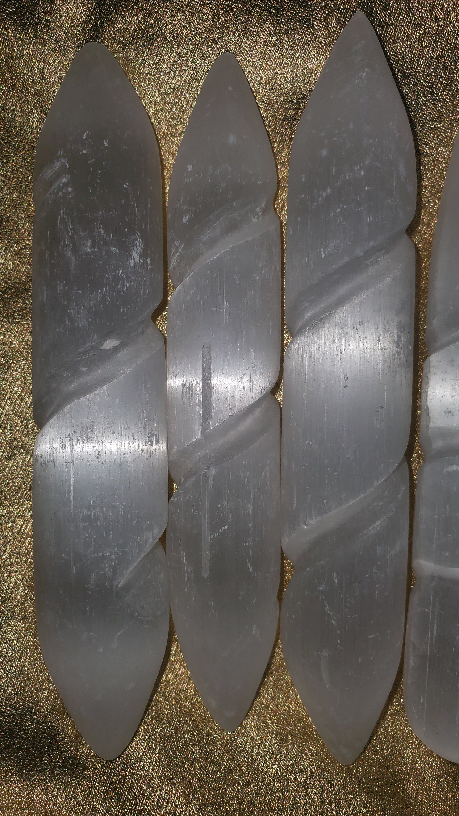Selenite crystal wand with spirals. Great for clearing and cleansing unwanted energies