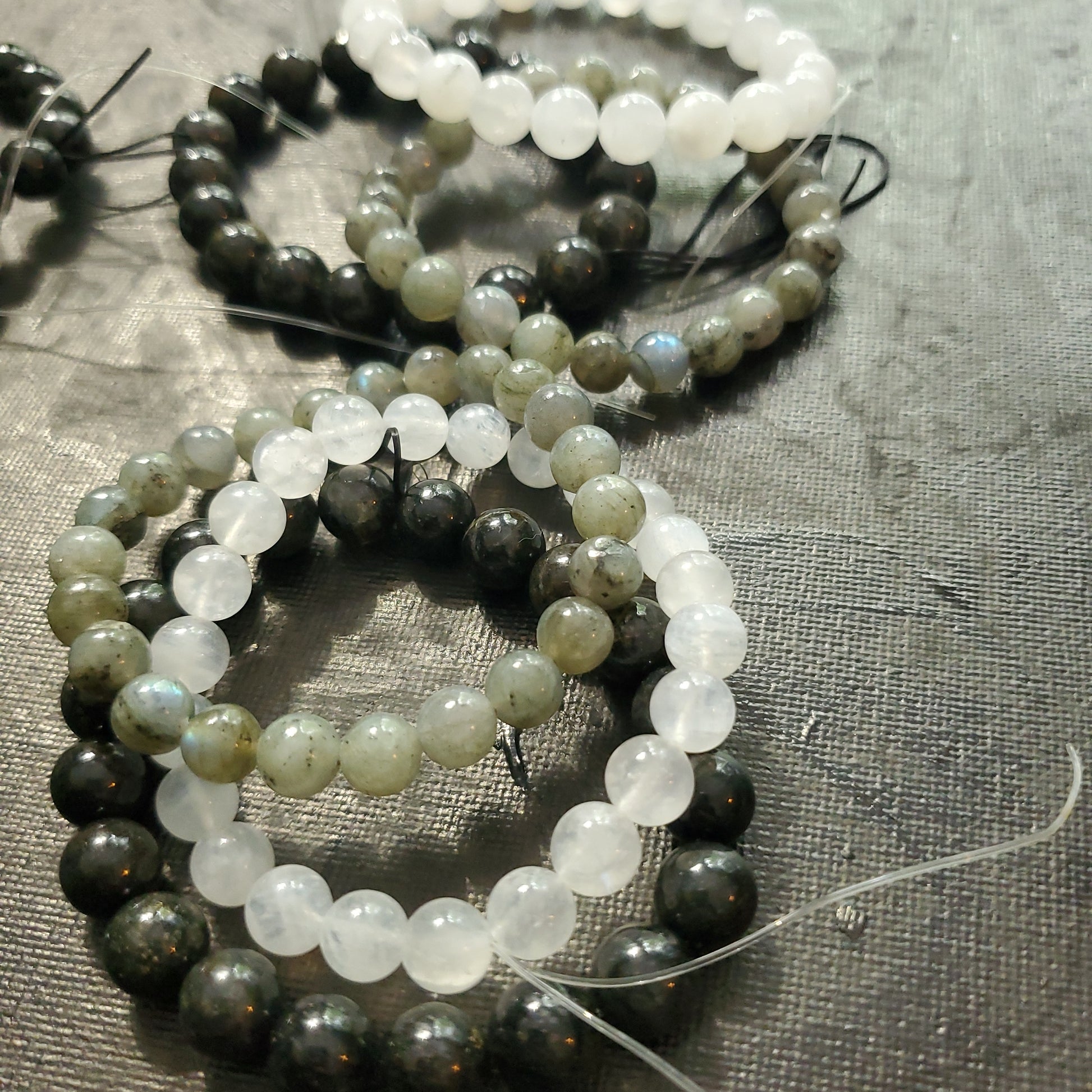 Stormy skies crystal bracelet stack is a part of Aldygoods Summer bracelet stack collection. Includes one Pyrite bracelet, one moonstone bracelet and one lab bracelet! Every order comes with Freebies